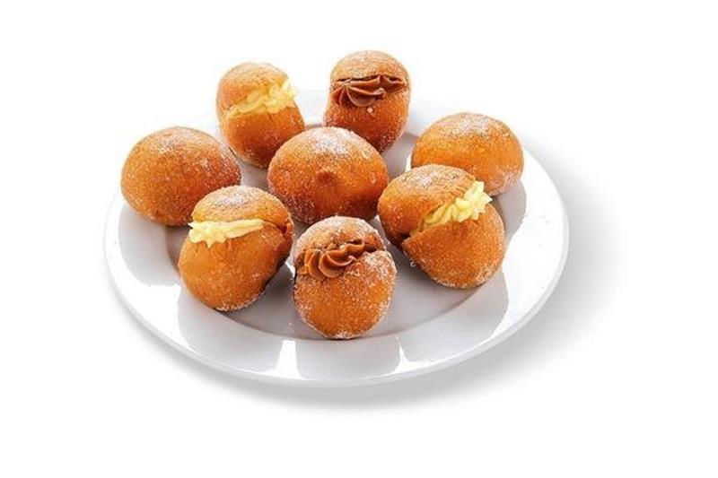 Derretir la manteca y batir los huevos y en un recipiente mezclarle lo anterior con el resto de la leche y la levadura ya disuelta y agregar lentamente la harina. Después de mezclados trabajarlos sobre una superficie hasta que quede una masa homogénea. Amasar bien y formar los bollos y dejar leudar hasta que doblen su medida. Colocar los bollos en una sartén con aceite bien caliente y suficiente como para que los tape. Freírlos de ambos lados. Una vez listos, dejarlos enfriar. Pasarlos por azúcar. Si se desea se les puede hacer un pequeño corte en el centro y con una manguera inyectarles la mermelada o la crema pastelera.