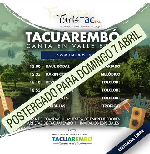 Ante el pronóstico adverso para hoy queda postergada la programación del Turistac para el domingo 7 de abril
